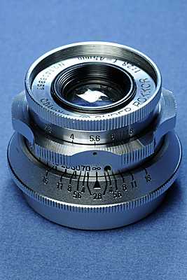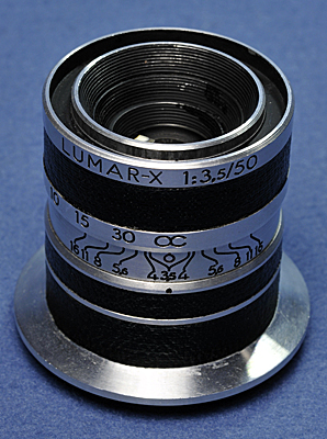 LUMAR-X 50mm F3.5 521番台 秋葉原のカメラのキタムラで購入したpeliflex Iに付いていたモノ。 1953年発売。 Lマウントレンズだが、レンジファインダの距離計とは連動しない。 |