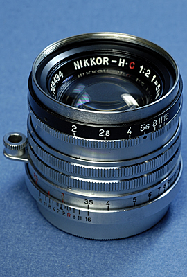 NIKKOR-H.C 5cm F2 739番台 ヤフオクで落札したモノ。 1957年位のモノ。 無限遠のストッパーが壊れている。 |